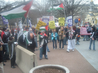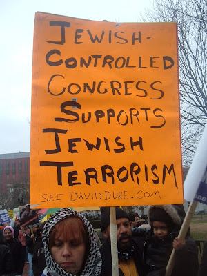 This afternoon, under gray skies which turned to freezing and wet rain, a few hundred supporters of Hamas and anti-Semites gathered in front of the White House in Lafayette Park to protest Israel's self-defense in the wake of constant rocket attacks from Hamas-controlled Gaza, ceded by Israel as a part of land-for-peace deal in 2005....